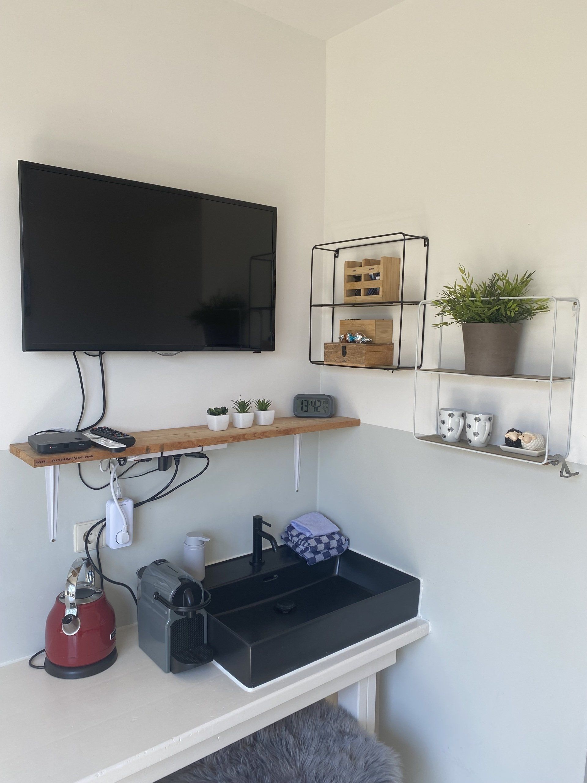 Koffie en thee zijn aanwezig, ook zijn er borden, bestek en glazen aanwezig.